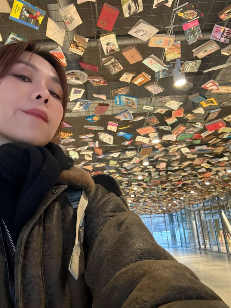 ▲ 蔡健雅參觀伊斯坦堡現代藝術博物館的書海裝飾。(圖:躍耳娛樂)