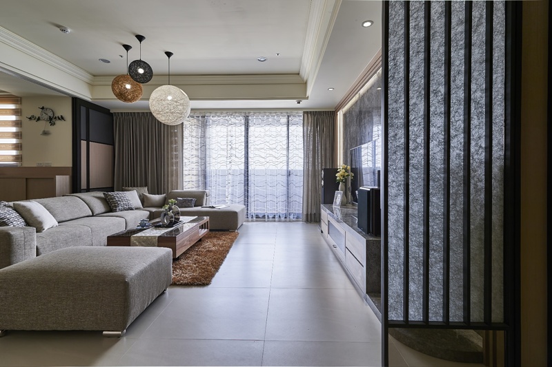 - 迎賓分界:玄關屏隔採用棉紙玻璃與鐵件塑造層次,在保留隱私的同時引導步伐自然轉折。