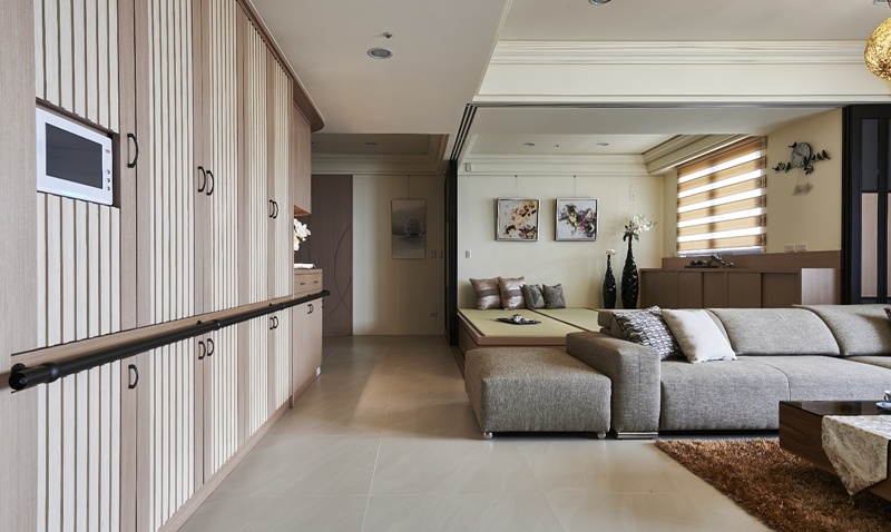 - 無礙尺度:全室地坪採無高低差設計,公區扶手沿立面延伸,讓長者行動更顯穩妥從容。