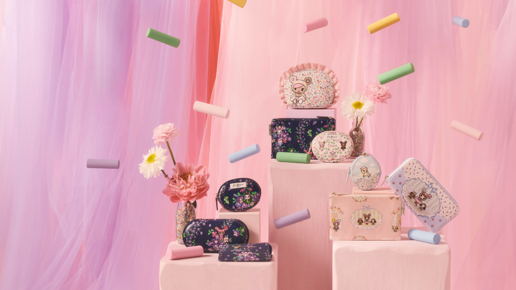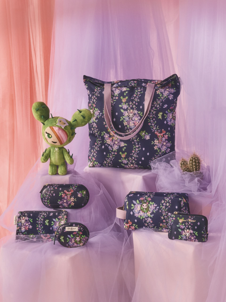 Cath Kidston 經典的碎花與復古輪廓,與 tokidoki 充滿張力與色彩爆發力的角色設計相互碰撞,在浪漫中注入俐落態度,在可愛裡增添自信宣言。