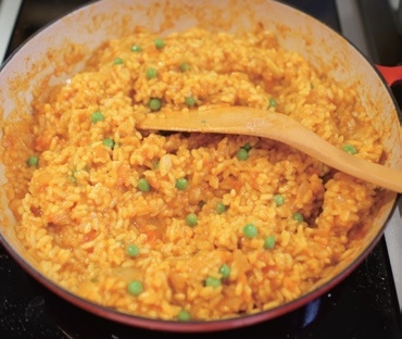 西班牙海鮮飯從備料到上菜,都非常令人興奮及期待,老公只要看到做海鮮飯,直覺轉身就是準備開酒吃大餐。海鮮燉飯的煮法與中式米飯完全不同,主要是靠「分次」加入水分,「不停攪動」及「不斷試吃」來控制米飯熟度。只要米的熟度掌握得好,不論加入的海鮮種類,都一樣好吃,最後用烤的,還可以增加獨特的誘人香氣!