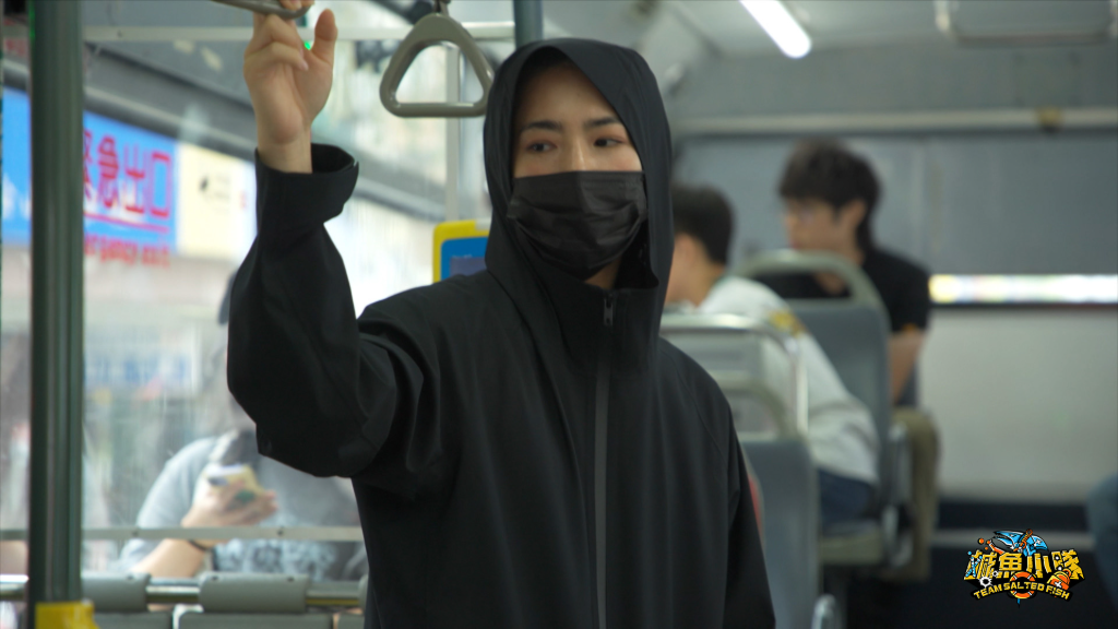 ▲ 《鹹魚小隊》第二季「隨機傷人」篇,宇宙在公車內飾演行為異常的乘客。(圖:公視)
