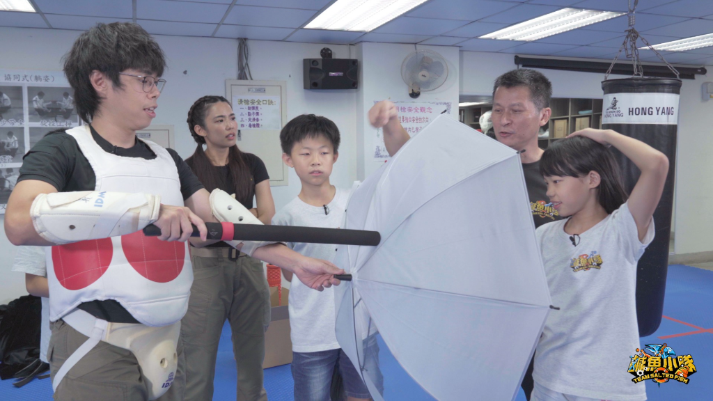 實驗狂人胡子在「鹹魚實驗室」中,以親手打造的「揮砍裝置」,測試「雨傘」能否阻擋兇嫌的美工刀攻擊。胡子透露:「雖然一部分雨傘的傘骨挺過了揮砍裝置的測試,不過萬一真的不幸在現實中遇到歹徒持凶器認真想要傷害你,他絕對不會單調的由上往下劈,也不會只拿美工刀,因此拿雨傘抵抗真的只能作為最後手段來使用,第一優先絕對還是跑為上策!」