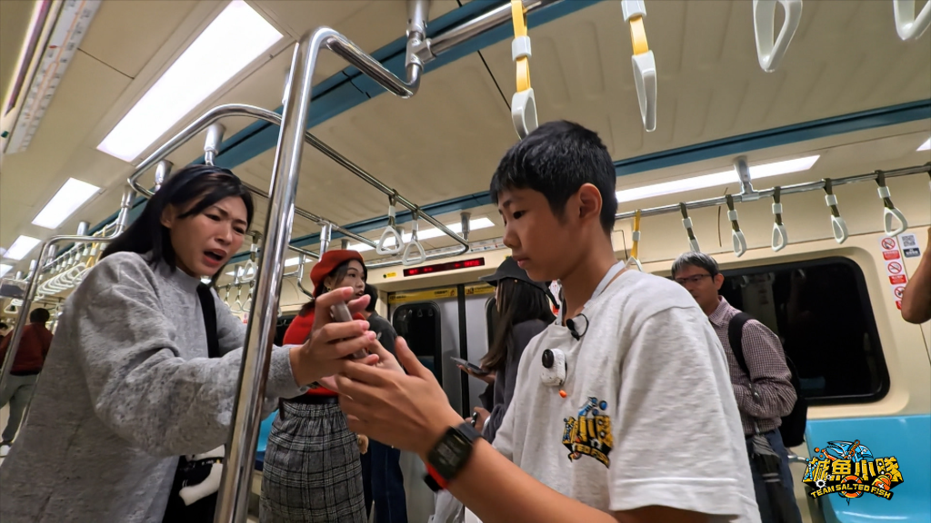 ▲ 《鹹魚小隊》第二季「隨機傷人」篇為真實還原事發現場,選擇行駛中的捷運拍攝,並安排臨演扮演乘客。(圖:公視)