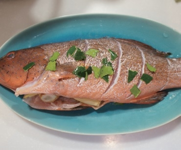 星斑(或其他400 ∼ 500 克鮮魚) ⋯1 隻、泰式甜辣醬⋯2 大匙、魚露⋯3 大匙、蒜末⋯ 1 大匙、辣椒末⋯適量、香菜梗切末⋯1 大匙、香菜葉切末⋯1 大匙、泰國青檸檬⋯ 3 顆、蔥段⋯適量、米酒⋯適量、鹽⋯適量