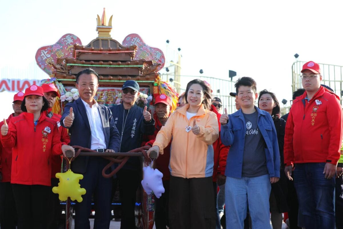 翁縣長偕夫人劉莉英、觀光署長陳玉秀、立委蔡易餘、陳冠廷、議長張明達、副議長陳怡岳、奉天宮董事長何達煌、配天宮董事長蔡承宗、六興宮主委江筱芃,以及地方各級民代,見證三位媽祖安座、世紀同框的時刻。
