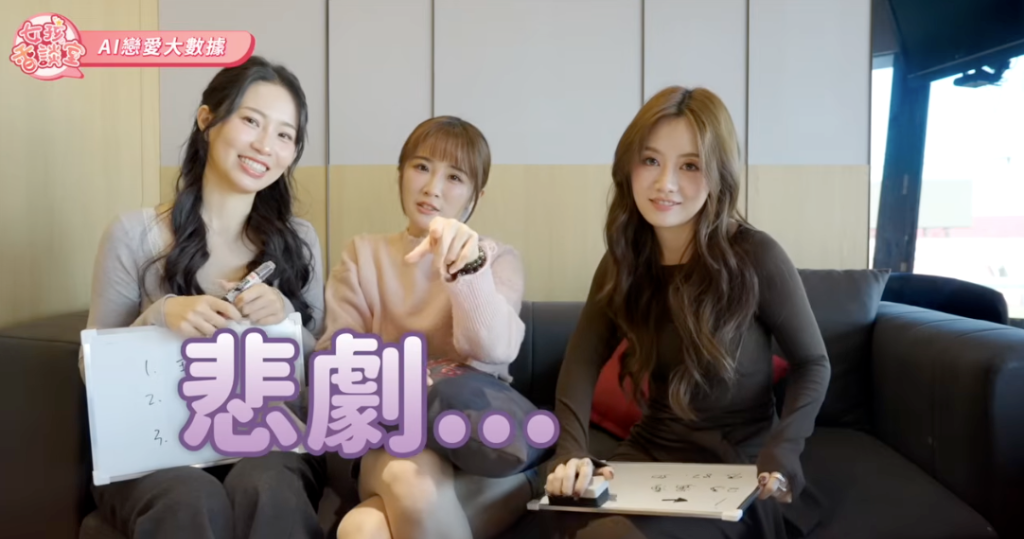 聊到每個人在愛情裡的「戀愛人設」,若潼坦言自己是理性戀愛腦,沒想到 AI 的分析也精準點出她的性格:「內心渴望為愛奔赴,腦袋卻總能跳出一個『冷靜視角』在旁邊打分數,讓妳談戀愛時總像是在感性衝動與理性自省之間反覆拉扯。」讓若潼直呼「是準的」,笑說 AI 似乎真的很了解自己。至於溫妮則笑稱自己屬於「幼稚隨和」,AI 也分析她在愛情裡會慢慢放下防備,讓她點頭認同。若潼更笑說:「是一個好女友好媳婦的感覺,有一種嫁雞隨雞,嫁狗隨狗的感覺。」溫妮則補充:「前提是我要愛他。」