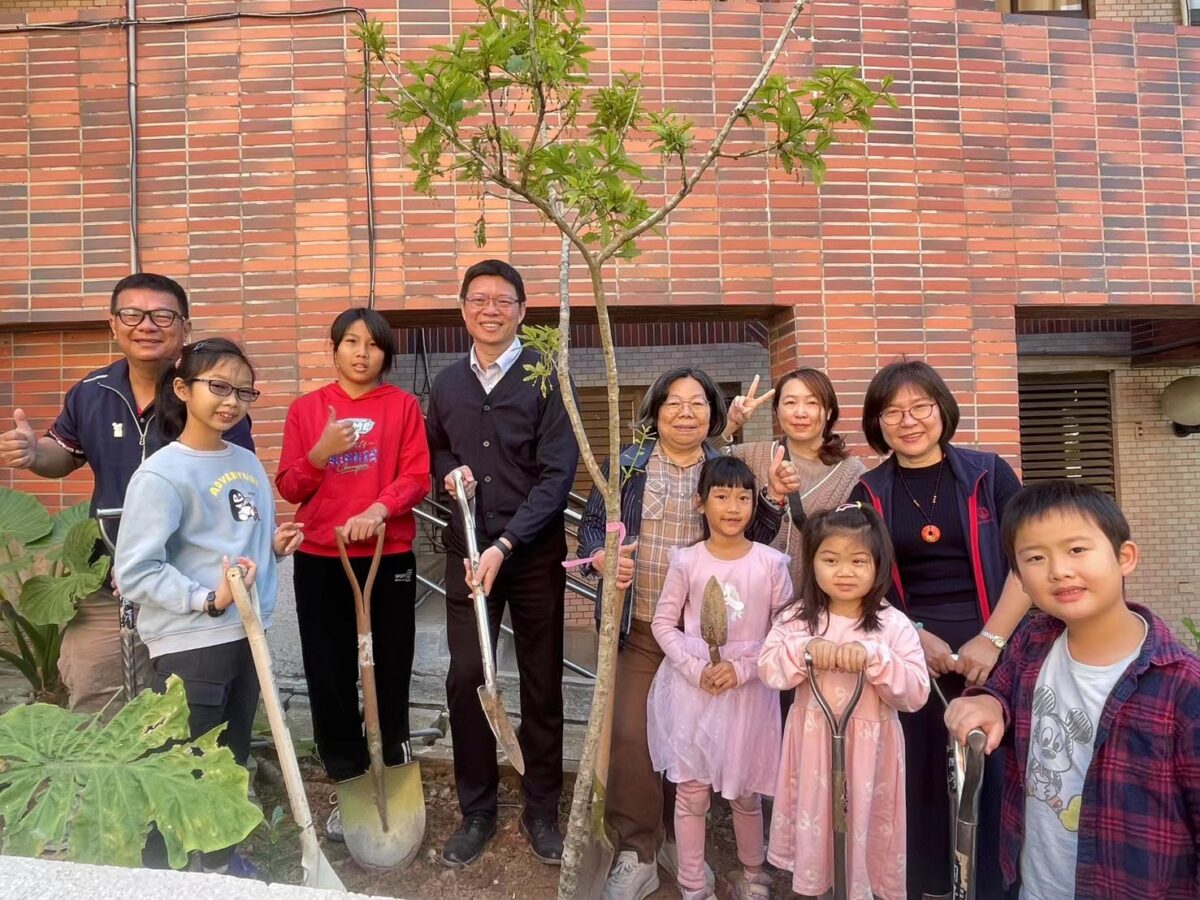 邱榮輝校長進一步指出,本次植樹活動特別挑選具備多重生態意義的原生樹種。魚木與過山香為端紅蝶及多種鳳蝶的關鍵寄主植物(食草),能有效營造蝴蝶生態廊道;而極其稀有的瀕危植物槲櫟,則以其高密度的木質特性,扮演校園中長效穩定的「固碳戰將」。初步估算,今日種下的幼苗在成年後,每株每年平均可固定約 10 至 20 公斤的二氧化碳。透過這項具體行動,蘭潭國小將「2050 淨零排放」的抽象概念轉化為孩子們觸手可及的科學實踐,讓學生從測量苗木胸徑與樹高的過程中,學習氣候變遷與生態保育的關聯。