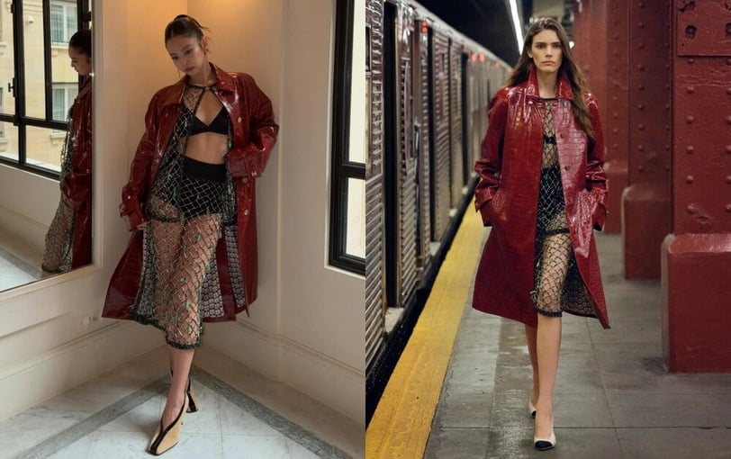 Jennie 作為 Chanel 大秀的頭牌嘉賓,每次現身幾乎都能驚豔全場!這次她也搶先穿上未上市的 2026 Métiers d’art 工坊系列的鏤空寶石裝,華麗的鑲嵌細節在燈光下閃耀奪目,展現出品牌工坊系列精緻的手工工藝。外層再搭配一件磚紅色鱷魚壓紋皮革外套,為整體造型注入率性氣場,在華麗與酷感之間取得完美平衡,再次展現 Jennie 的時尚駕馭力。