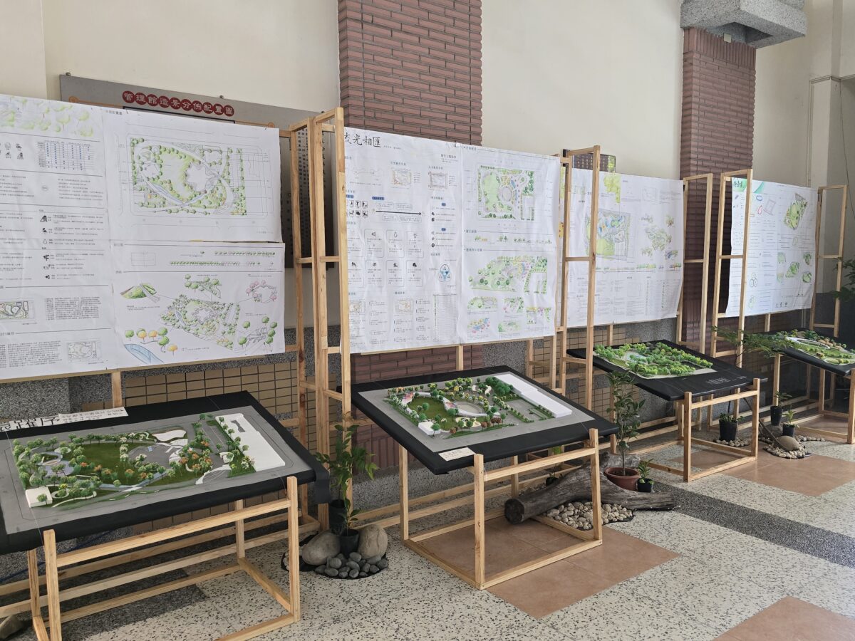 展覽亮點之一為進修部學生打造的「森境」生態島,以「零廢棄永續美學」為理念,運用校內回收材料與原生植物,在校園營造微型生態棲地空間,展現景觀設計在環境永續與生態營造上的創新實踐。