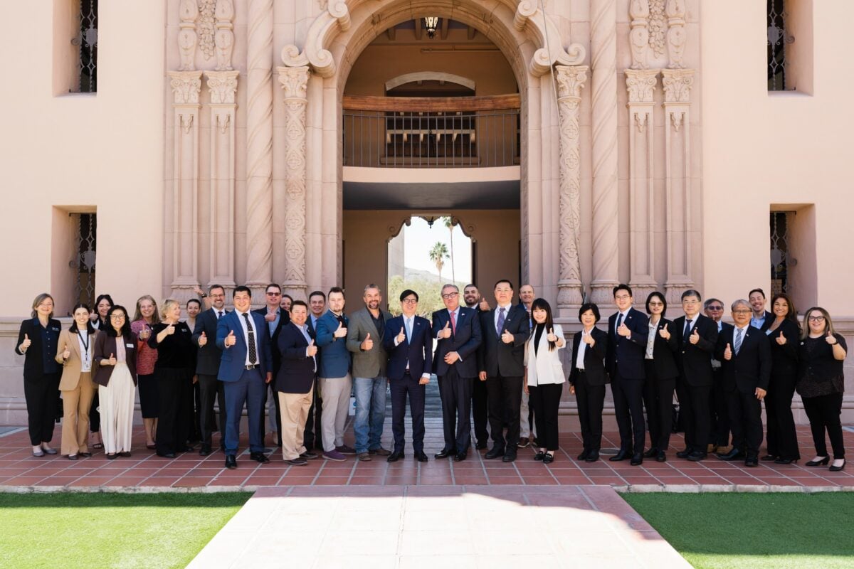 ▲亞利桑那南部經貿核心全面對接高雄,皮馬郡府、土桑市、亞利桑那大學及當地企業均出席簽署及圓桌會議,產官學出席陣容堅強,與高雄市政府訪團於指標性歷史建築皮馬郡歷史法院合影留念。
