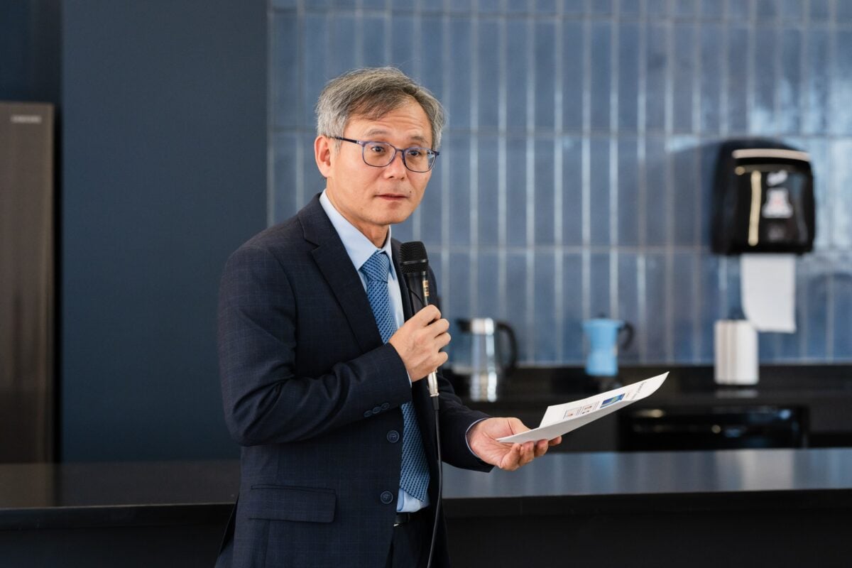▲中山大學校長李志鵬指派電機系主任謝耀慶代表出訪,謝教授親自介紹半導體矽光子雄厚的教學與研究實力。
