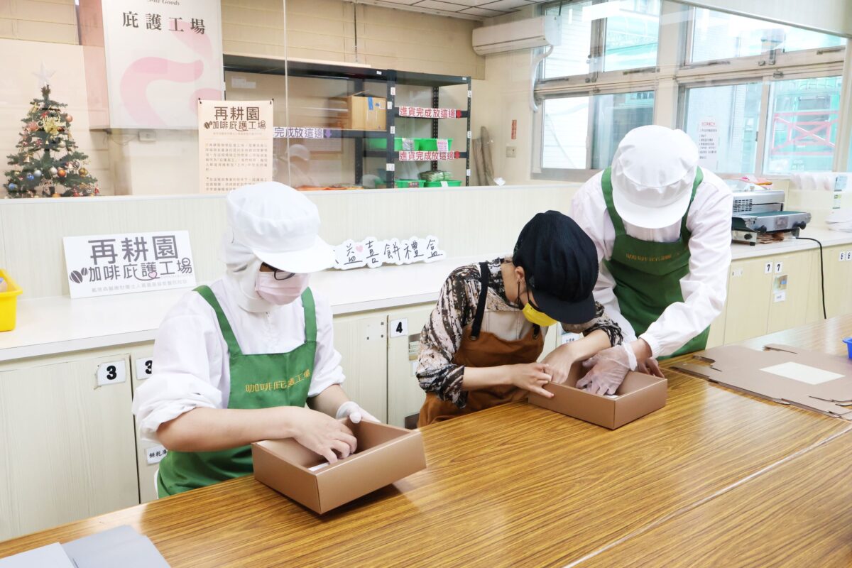 再耕園咖啡庇護工場由嘉義基督教醫院附設成立,長期致力於提供身心障礙朋友穩定的工作訓練與就業機會。工場內以手工餅乾、烘焙點心與咖啡產品為主要特色,從原料準備、麵團製作、壓模塑形到烘焙包裝,每一個環節都由庇護員工親手完成。透過就業服務員的專業陪伴與輔具設計,讓每位庇護員工都能依照能力參與工作,在過程中建立技能與自信。