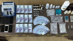 警方獲報後隨即溯源偵辦,深入分析涉案人員關係與幫派結構,並報請臺灣臺北地方檢察署檢察官指揮偵辦。經蒐證後,於115年1月6日同步在桃園市楊梅、平鎮及中壢等地區展開查緝行動,成功將幕後策畫者及共犯等5名犯嫌追捕到案;並扣押現金新臺幣123萬元、依托咪酯菸油、依托咪酯菸彈成品及原料一批、點鈔機等相關證物,全案依涉嫌詐欺犯罪防制條例、組織犯罪防制條例及毒品危害防制條例,移送臺灣臺北地方檢察署偵辦。