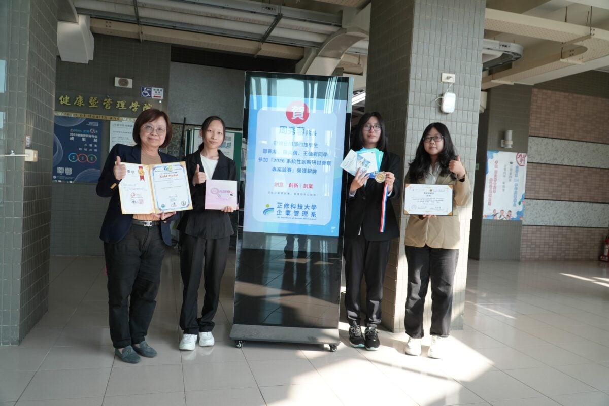 【記者 王苡蘋╱高雄 報導】正修科技大學健康暨管理學院再傳捷報。在周秀蓉院長指導下,由學生鄭珮希、陳奕蒨、王佳君開發的《AI卡牌×職涯探索擴充包—未來職場模擬戰》榮獲「2026系統性創新研討會暨專案競賽」銀牌,並於IIC國際發明展勇奪金牌,展現創新設計與AI教育應用成果。周秀蓉表示,桌遊結合ChatGPT即時互動機制,讓AI成為學習過程的一部分。