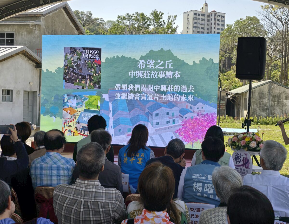 縣長王惠美表示為讓眷村歷史持續傳承,文化局出版中興莊系列原創繪本,分為上下兩冊。《重回1950大時代記憶》以歷史事件為背景,描繪中興莊第一代居民自抗戰時期、青島撤退來臺,到落腳彰化的艱辛歷程;《希望之丘—中興莊》則聚焦眷村日常生活,呈現鄰里互助、家庭凝聚的溫暖故事。透過圖像與文字,將歷史轉化為適合親子共讀的文化讀本。中興莊有故事館、導覽體驗、藝文展覽,以及青創進駐,並串聯八卦山步道,連結回憶、生活與未來,未來也將規劃活動空間供鄉親使用。