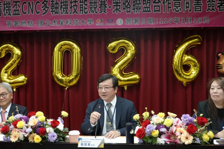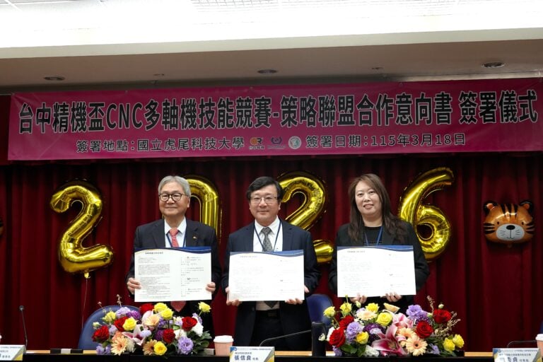 虎科大自111年起即與台中精機展結盟合作,並透過多軸機技能競賽,以賽代訓培養學生實務能力。隨著產業對高階技術人才需求持續升溫,此次聯盟以虎科大為核心母艦,進一步聯合勞動部中彰投分署及多所具備多軸機設備的技職校院,正式將合作層級由「點」擴展至「面」,串聯全國從北到南18所技術型高中與科技大學,建構完整的技職人才垂直整合生態系。