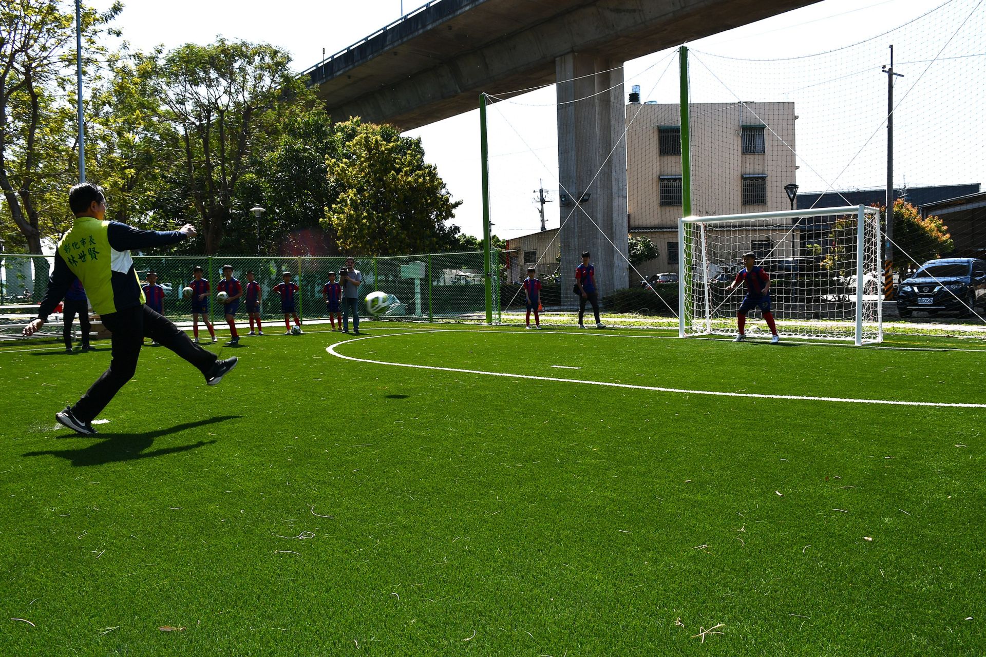 位於彰化市東區國道高架橋橋下空間長期未充分利用,且因缺乏規劃導致雜草叢生、環境髒亂,造成地方環境及安全隱憂,市公所近幾年積極向交通部高速公路局爭取認養維護並進行橋下空間活化,闢建成五人制的足球共用槌球場的多功能運動場,18日完工正式啟用。
