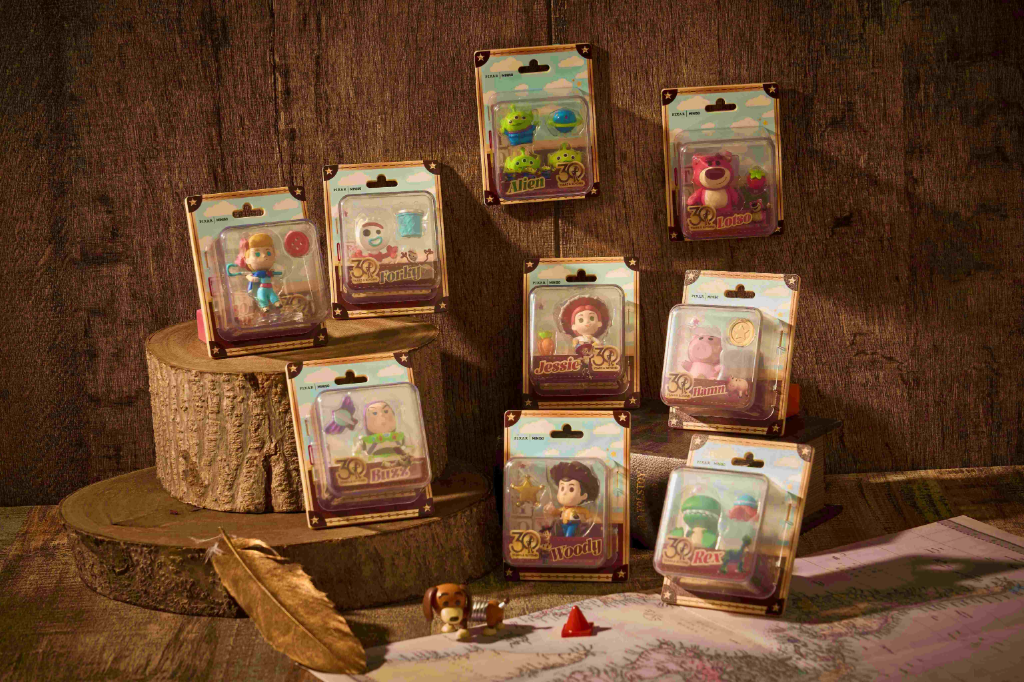 ▲ 首度在媒體面前公開揭幕的「玩具總動員玩心無限」盲盒,將胡迪、巴斯光年等角色的冒險神韻,封裝於懷舊質感的吊卡包裝中,是本次正櫃最受矚目的收藏級逸品。(圖:MINISO)