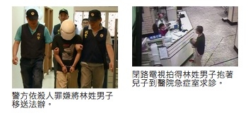 【on.cc東網專訊】 基隆市一名有毒癮的44歲林姓男子,本月13日晚手抱1歲10個月大的兒子送進醫院急症室,聲稱兒子口鼻被薄毯悶住窒息,自己要回家拿證件,把兒子遺棄在 醫院後便逃去無蹤;匿藏兩日後,林男昨晚經21歲大兒勸說後向警方自首,坦承當晚因不滿兒子吵鬧,才會在兒子躲進毛毯時用力壓住,最終導致兒子窒息死亡。 警方偵訊後依殺人罪嫌將林男移送地檢署聲請羈押,基隆地院認定他有逃亡之虞,裁定收押。
