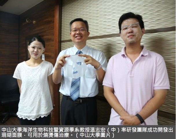 【on.cc東網專訊】 珊瑚不只能看,還能用敷的!國立中山大學海洋生物科技暨資源學系教授溫志宏率領研發團隊,和國立海洋生物館研究員宋秉鈞合作,成功培育出軟珊瑚,並研發出 全世界第一款、以人工養殖珊瑚製成的面膜,最特別的是,珊瑚萃取液經過動物實驗,可在兩周內有效治療燒燙傷、異位性皮膚炎,未來若通過人體實驗,對於燒燙傷治療及緩解皮膚過敏症狀的貢獻指日可待。