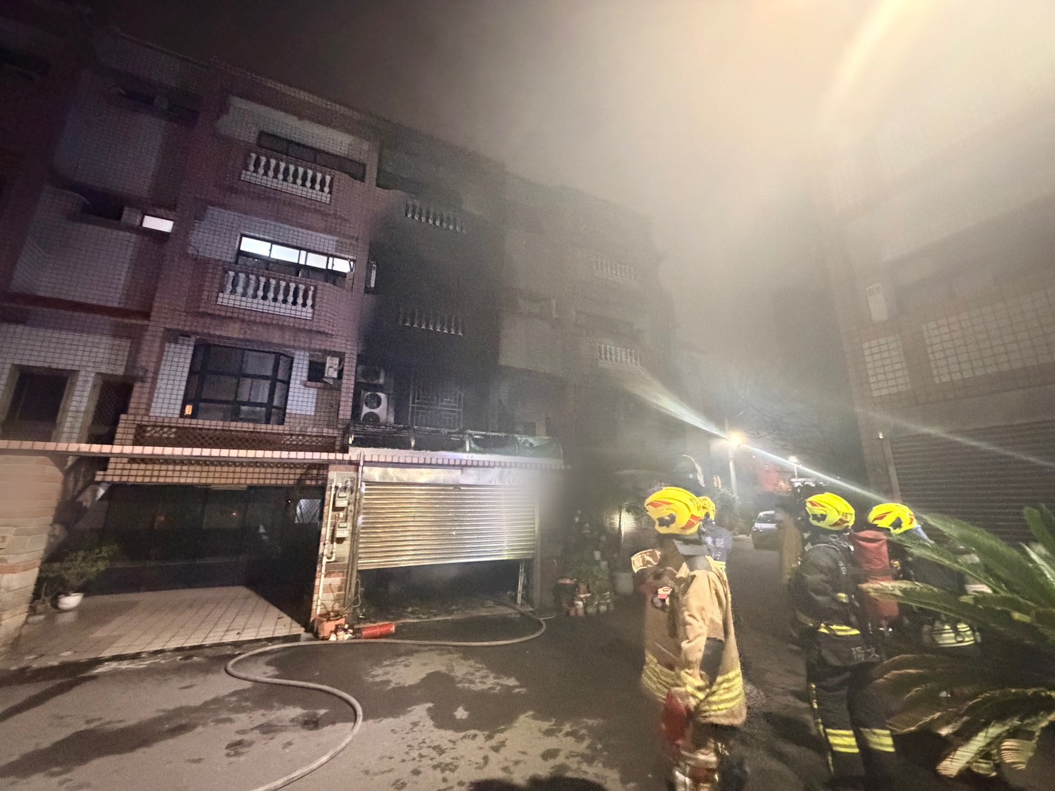 苗栗縣消防局表示,今日00時27分獲報,頭份市八德一路305巷5弄透天住宅火警,出動消防車5輛,消防隊員25人、義消6人前往灌救。現場為4樓RC建築物,1樓有火有煙,2樓冷氣機看起來有燃燒。