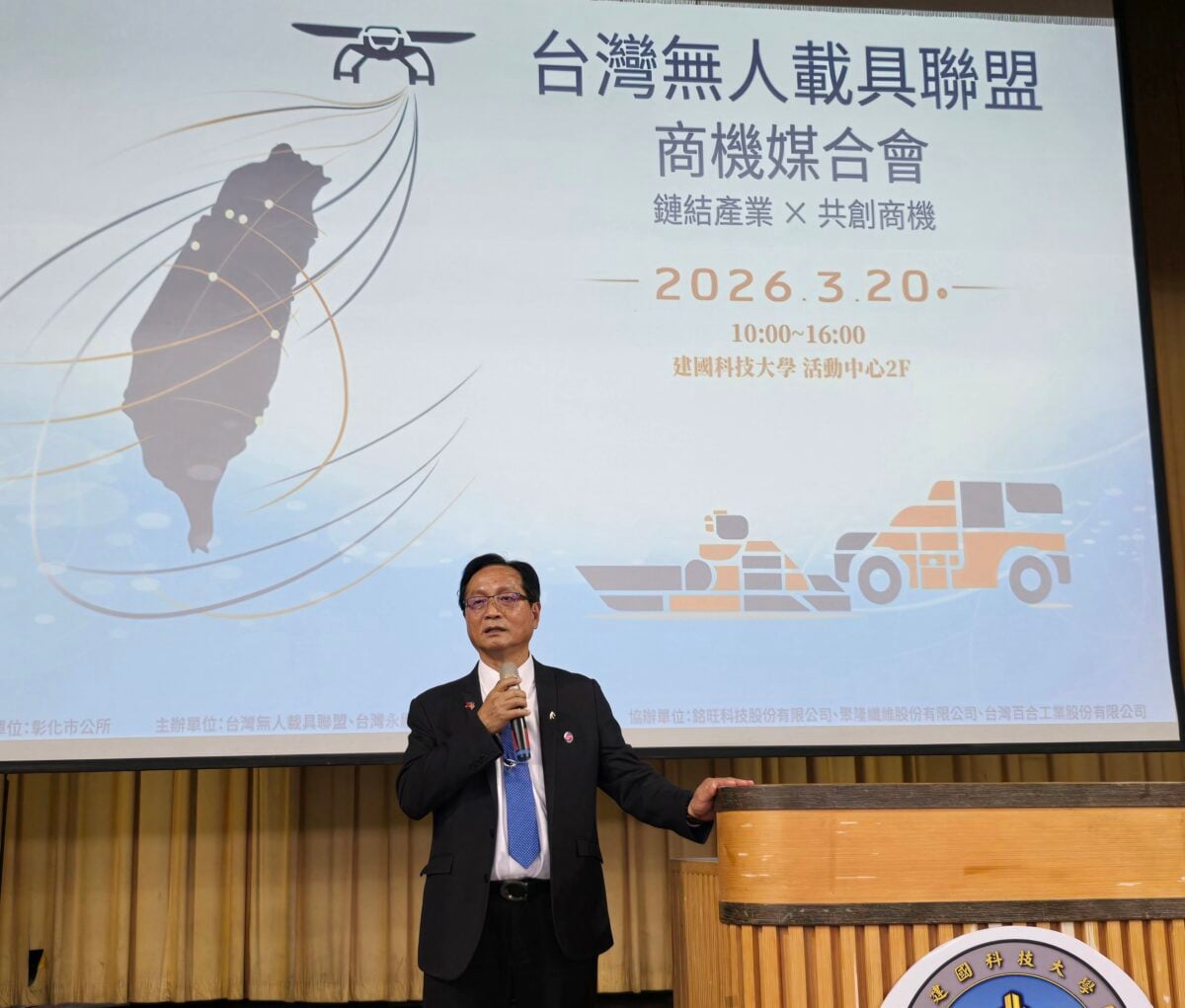 【記者 廖美雅/彰化 報導】由台灣無人載具聯盟、台灣永續價值共創協會與建國科技大學聯合主辦的「台灣無人載具商機媒合會」,今(20)日在建國科技大學活動中心登場。現場匯聚近百家參展商,展出共計108個展位。媒合會以「鏈結產業 × 共創商機」為核心,呈現台灣在無人載具產業鏈的技術深度,吸引眾多產官學研代表與國際買家共襄盛舉。