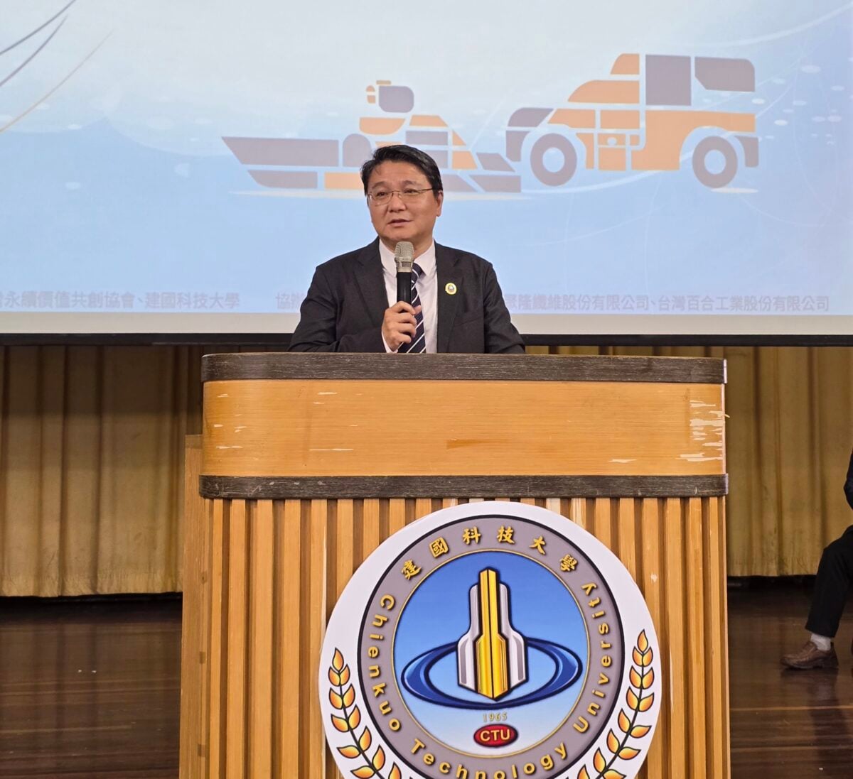 ▲建國科大新任校長王榮祖致詞。(記者廖美雅拍攝)