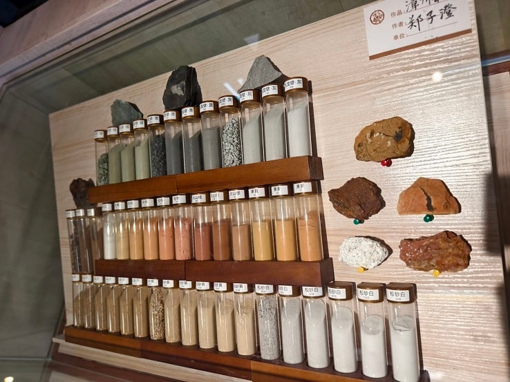 ▲▼岩彩採集原料展示。