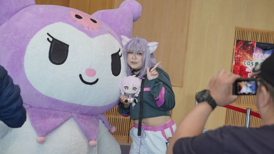 走入館內,動漫舞台區熱鬧展開,現場安排動漫歌曲演唱與互動活動,參與者隨著節奏揮舞應援,掌聲與歡呼聲此起彼落,氣氛逐漸推向高潮。現場更邀請超人氣卡通角色「庫洛米」驚喜現身,吸引許多觀眾圍觀合影,成為全場矚目的焦點之一。舞台前後亦可見各式Cosplay角色穿梭其中,為整體活動增添視覺亮點與活力。館內另一側則為創作市集,匯聚來自各地的動漫創作者與同好,展售插畫、漫畫、角色周邊及手作作品,攤位間交流熱絡,不僅展現台灣ACG文化的多元樣貌,也讓參與者能近距離感受創作能量與熱情。