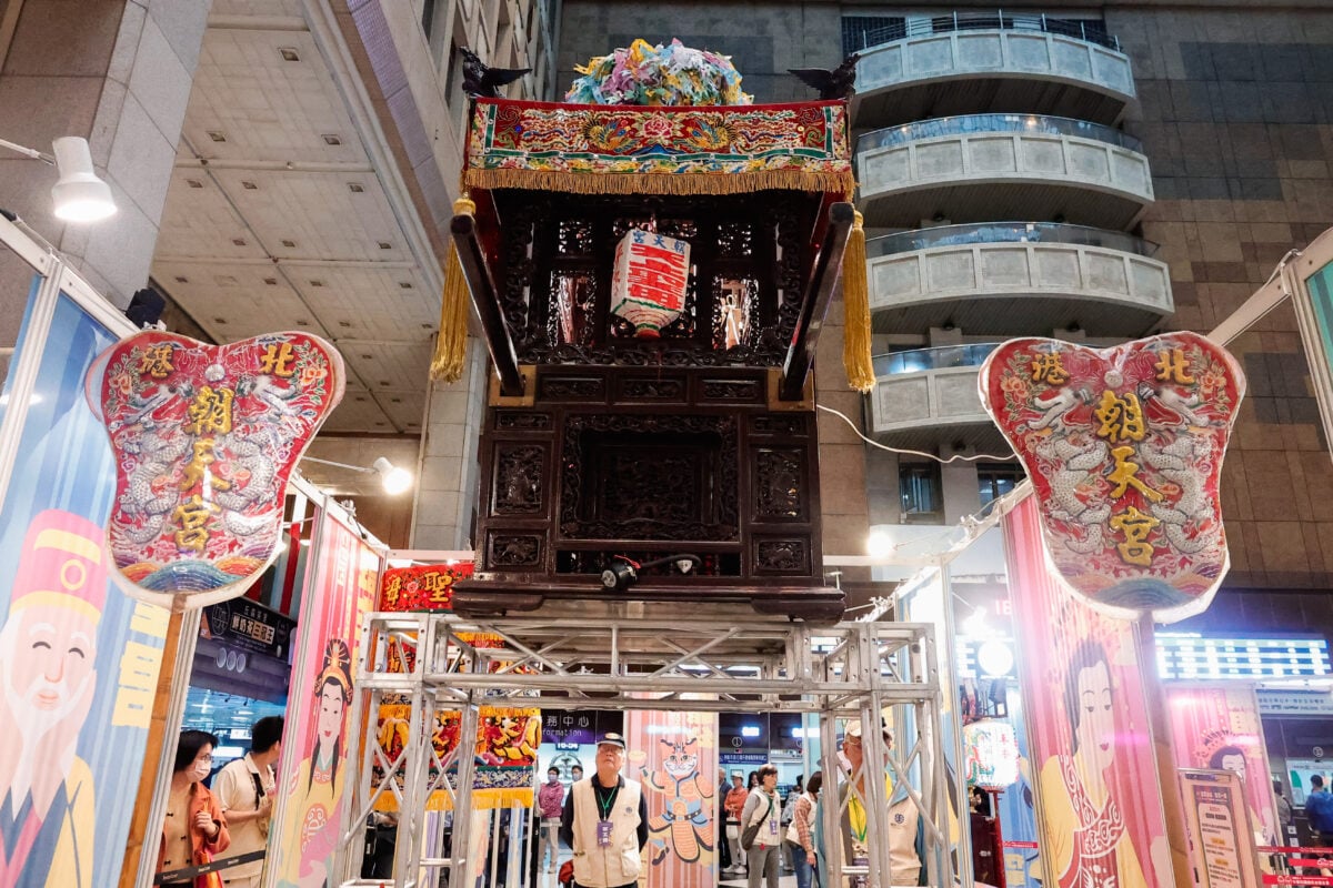 本次特展以「共融」為核心概念,將臺灣具代表性的廟口夜市意象帶入展場。夜市是臺灣最具包容力的交流場域,匯聚不同年齡、背景與身分的人群,展現彼此接納、不分你我的精神。展覽另一大亮點,是北港朝天宮媽祖駐轎進駐臺北車站大廳,展覽期間開放民眾參拜及鑽轎底,透過熟悉的文化祝福形式,傳遞包容多元、守護眾人的力量。