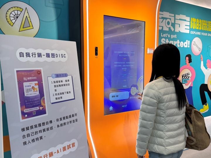 ▲學生體驗分館內「自我行銷-履歷DISC」模擬撰寫履歷自傳,產出人格分析報告,協助青年認識自我特質。