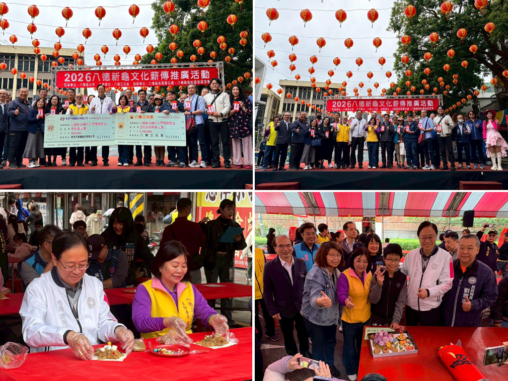 張市長今日於活動中敬獻大米糕龜,並親自體驗手作DIY祈龜,一同感受祈龜文化的熱情與創意。他指出,八德三元宮不僅是桃園深具特色的信仰中心,更因長期深耕社會公益榮獲內政部獎項肯定,期許這項傑出的傳統慶典能持續發揚光大,一年比一年更加精彩。
