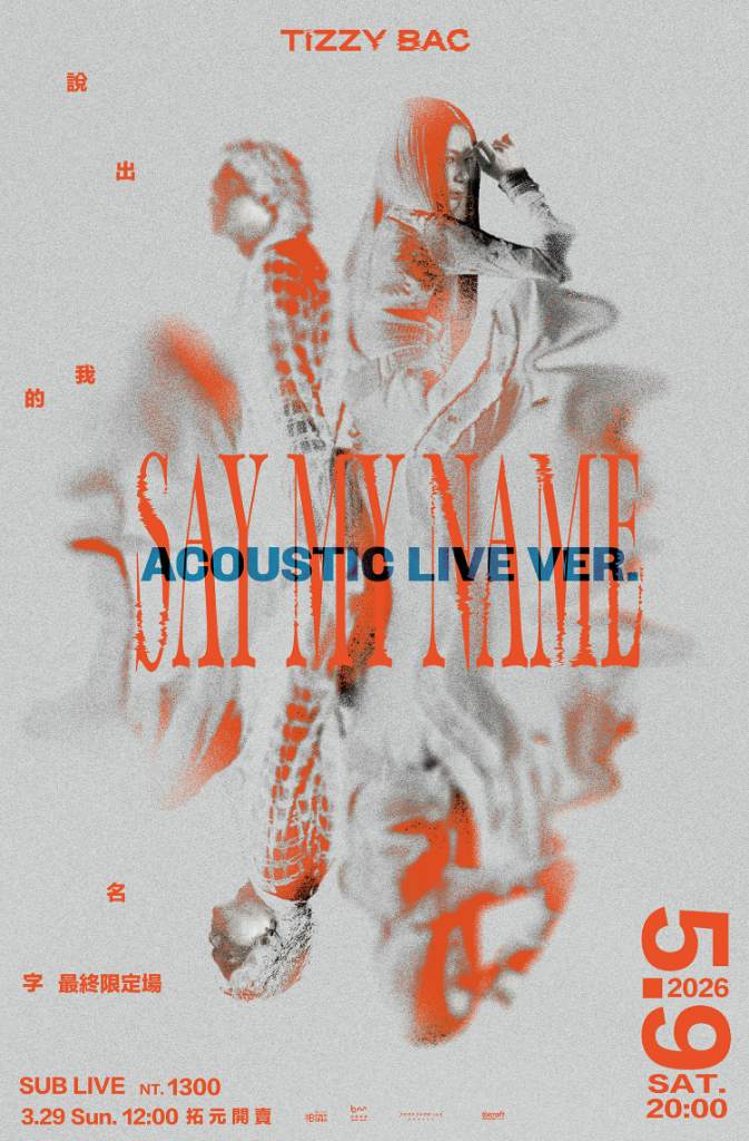 Tizzy Bac宣布加碼推出《說出我的名字》最終限定場「ACOUSTIC LIVE」,將於5月9日(六)晚間8點在SUB LIVE開唱,門票預計於3月29日(日)中午12點於拓元售票系統正式開賣。Tizzy