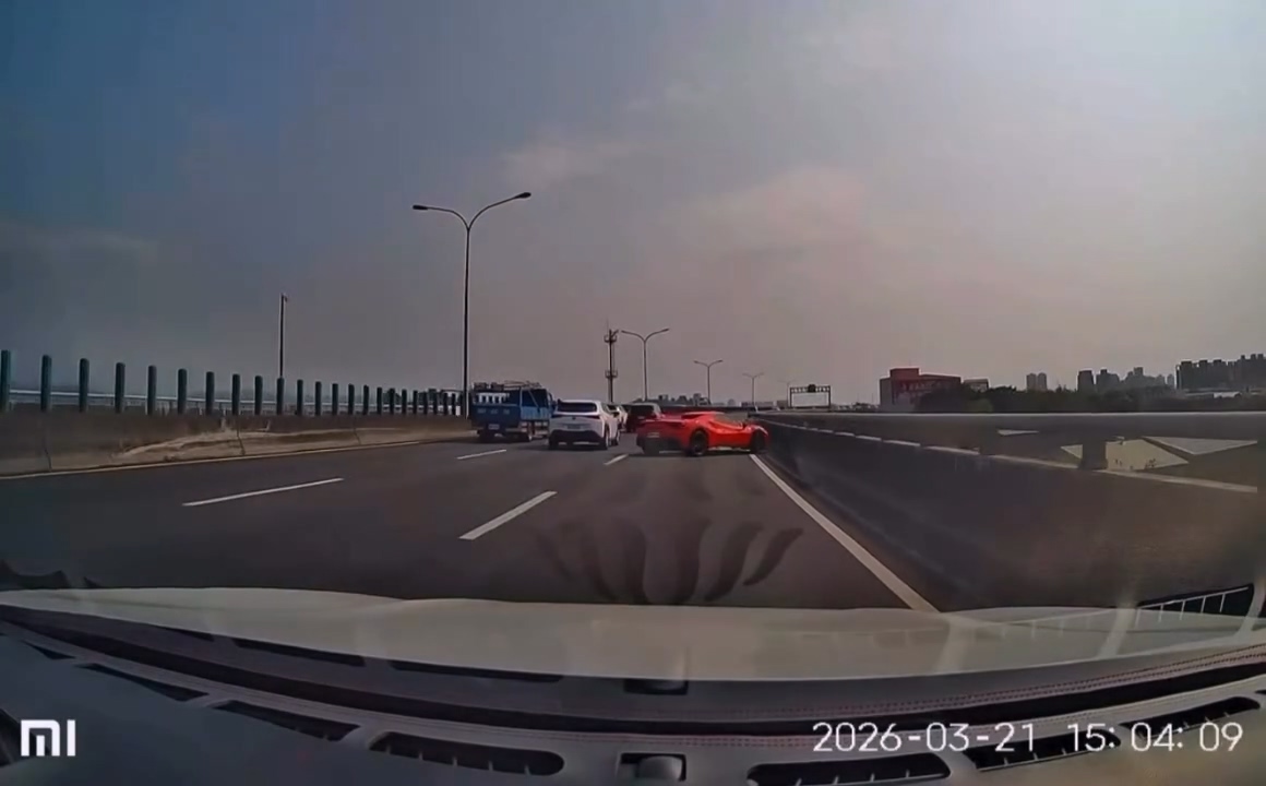 網友在Threads發文指出,21日下午3點多,有一輛法拉利在台74線狂飆,結果切換車道的時候失控自撞護欄,甩180度停下。
