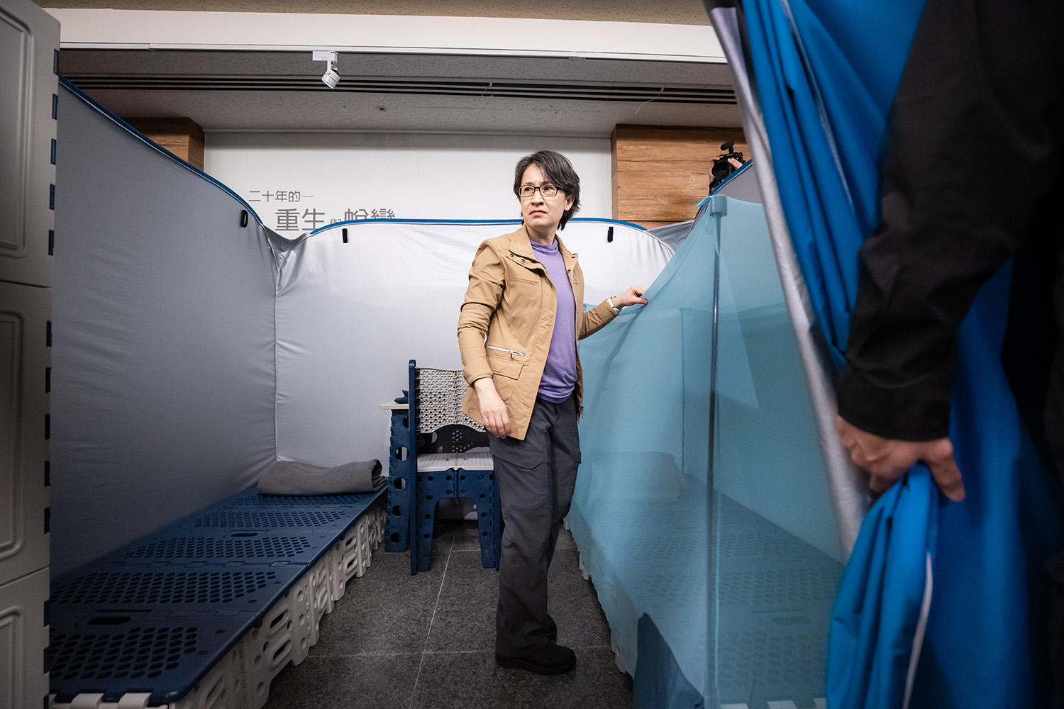 淨斯科技總監蔡昇倫博士現場展示了災民安置「七寶」,包括可快速展開的福慧床、福慧桌椅及折疊隔屏。蔡昇倫特別介紹了最新研發、外型如行李箱般的「福慧收納櫃」,附有滑輪拉桿方便移動。他指出,研發初衷源於證嚴法師對災民的悲心:「受災民眾也需要私人空間與安置物品的地方,這不僅是生活便利,更是為了守護受災者的隱私與尊嚴。」