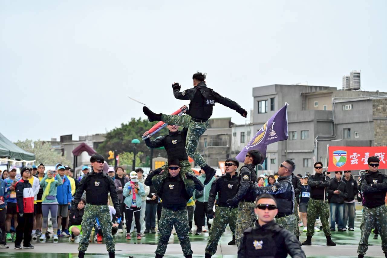 【民眾新聞網方健龍綜合報導】2026年第10屆北竿硬地超級馬拉松21日清晨正式鳴槍起跑,今年以「榮耀北竿.十載硬道」為主題,吸引1,818名來自全台及海外跑者齊聚北竿,共同挑戰被譽為「全台最硬」的馬拉松賽道。現場氣氛熱烈,馬防部雲台戰技隊精彩操演,加上專業的藍波老師及女兒潔潔帶領熱身舞蹈,選手們在完成暖身後蓄勢待發,迎向結合戰地景觀與山海風光的極限挑戰。
