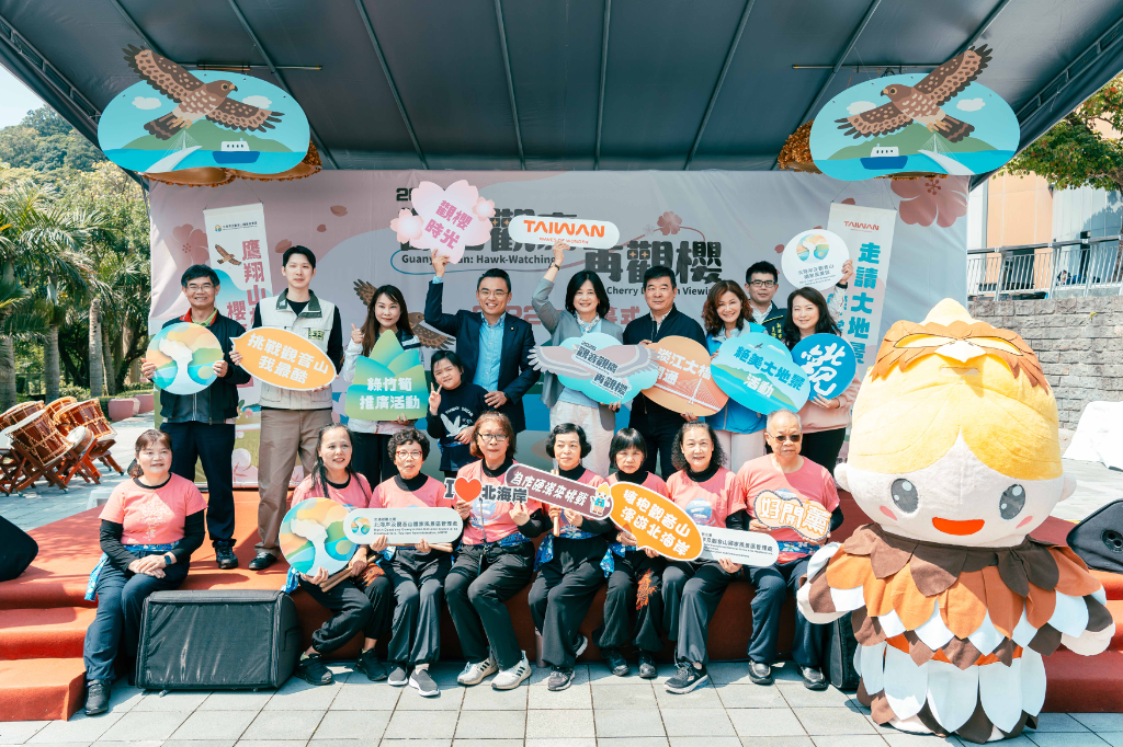 交通部觀光署北海岸及觀音山國家風景區管理處(以下簡稱北觀處)以觀音山豐富的山林地景、生態資源與農產特色為基礎,推出「2026觀音觀鷹再觀櫻」系列活動,整合「季節美景 × 生態導覽 × 大地景視野 × 在地特產」四大主題,透過春季賞鷹觀櫻揭開年度序幕,打造北臺灣具代表性的生態旅遊品牌。由立法委員洪孟楷、立法委員林淑芬國會辦公室張玉鈴助理、新北市議會李宇翔議員李敏豪特助、新北市政府觀光旅遊局王國振主任秘書、新北市政府農業局殷書韻科長、新北市五股區公所賴小萍區長及新北市八里區公所洪偉倫主任秘書等貴賓蒞臨共襄盛舉。交通部觀光署陳玉秀署長表示:「觀音山是個生態豐富的地方,可以從硬漢嶺遠眺淡江大橋,現在春天正是欣賞美景的好時機,觀光署正在推動「旅行.再發現」,大家可以不用到北海道,直接來北海岸走走,也希望大家把這份美好分享出去,讓更多人看見台灣的美!」