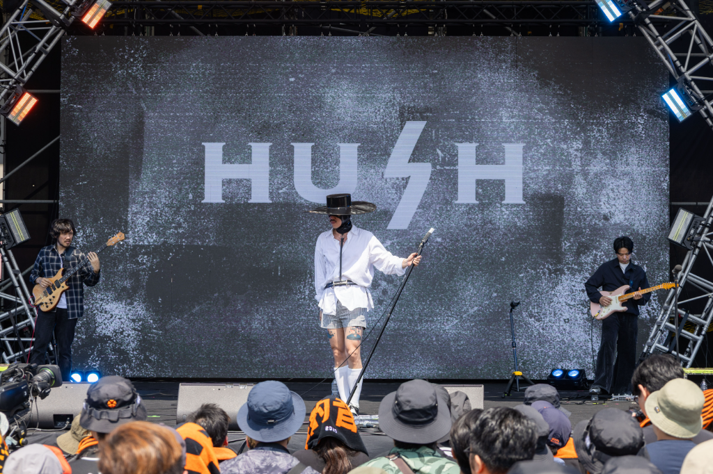 金曲歌王HUSH,久違重返大港開唱,有如《獵魔女團》Saja Boy火熱造型現身女神龍舞台,即便演出時段恰逢中午時刻,台下也擠滿歌迷支持,他開心表示:「很久沒回到大港舞台唱歌給大家聽,希望今日的相聚,可以成為大家片刻永恆。」