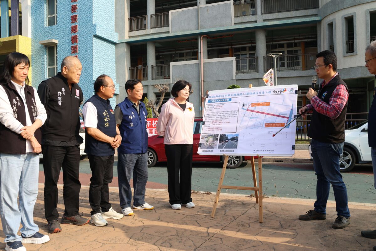 本次改善重點之一為縣道154線台61線至橋頭國小路段,該路段側溝因年久失修,加上油垢沉積導致排水不良,每逢豪雨即容易發生阻塞與積水問題,不僅影響環境衛生,也增加財產損失風險。縣府已完成規劃設計,將進行排水溝渠重建與改善,工程長度約849公尺,預計新設並優化側溝斷面,以提升整體排水效能。