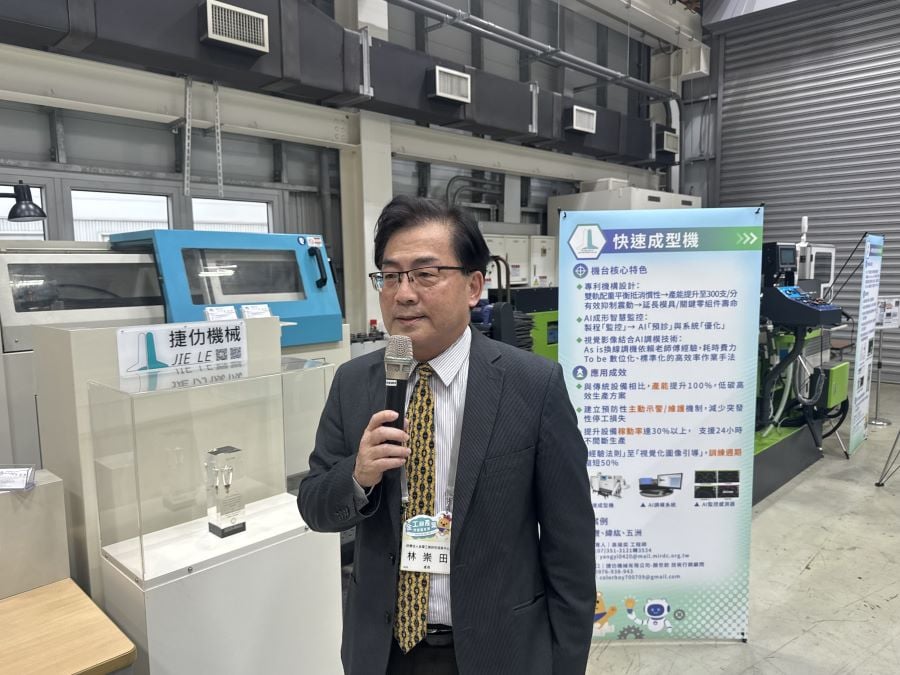▲金屬中心林崇田處長為貴賓導覽扣件智慧製造示範與試製類產線。