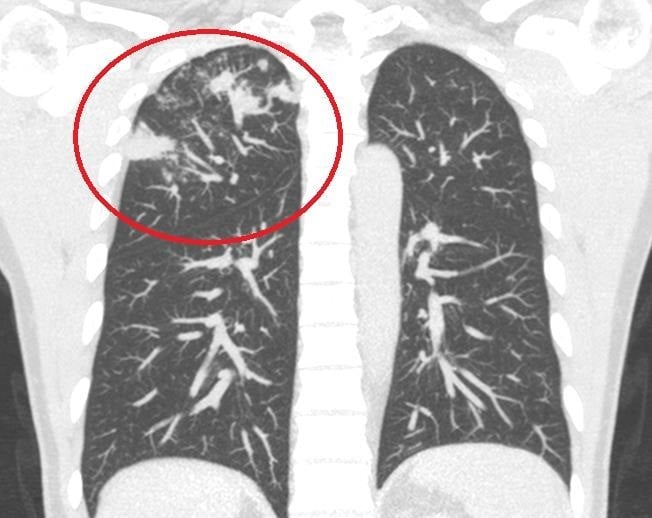▲放射檢查可見治療前李先生肺結核明顯病灶。