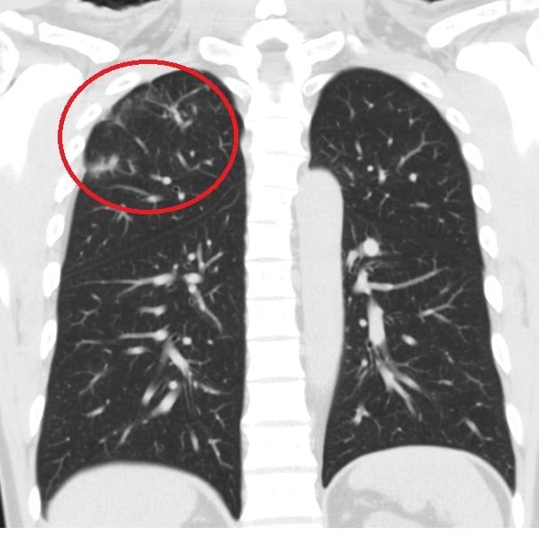 ▲放射檢查可見經治療後肺部病灶已明顯改善。