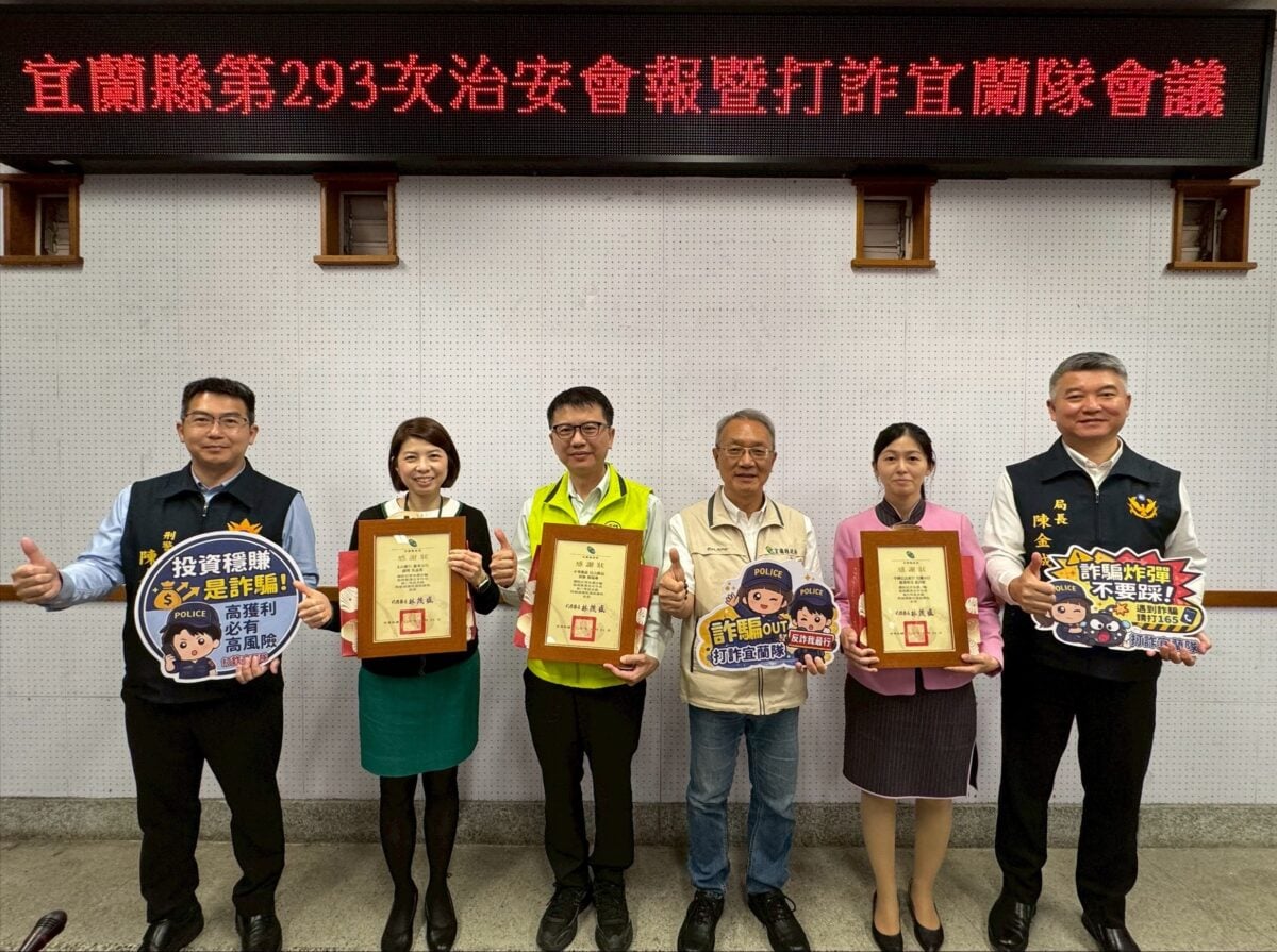 【記者 林明益/宜蘭 報導】宜蘭縣政府為感謝金融機構、地政機關積極攔阻詐騙案件,代理縣長林茂盛於今24日藉由治安會報表揚機警行員、地政承辦人員之義行,並頒發感謝狀予有功人員,期望透過公開表揚方式,強化全民打擊詐欺犯罪信心,暢通警民良好之通報機制。
