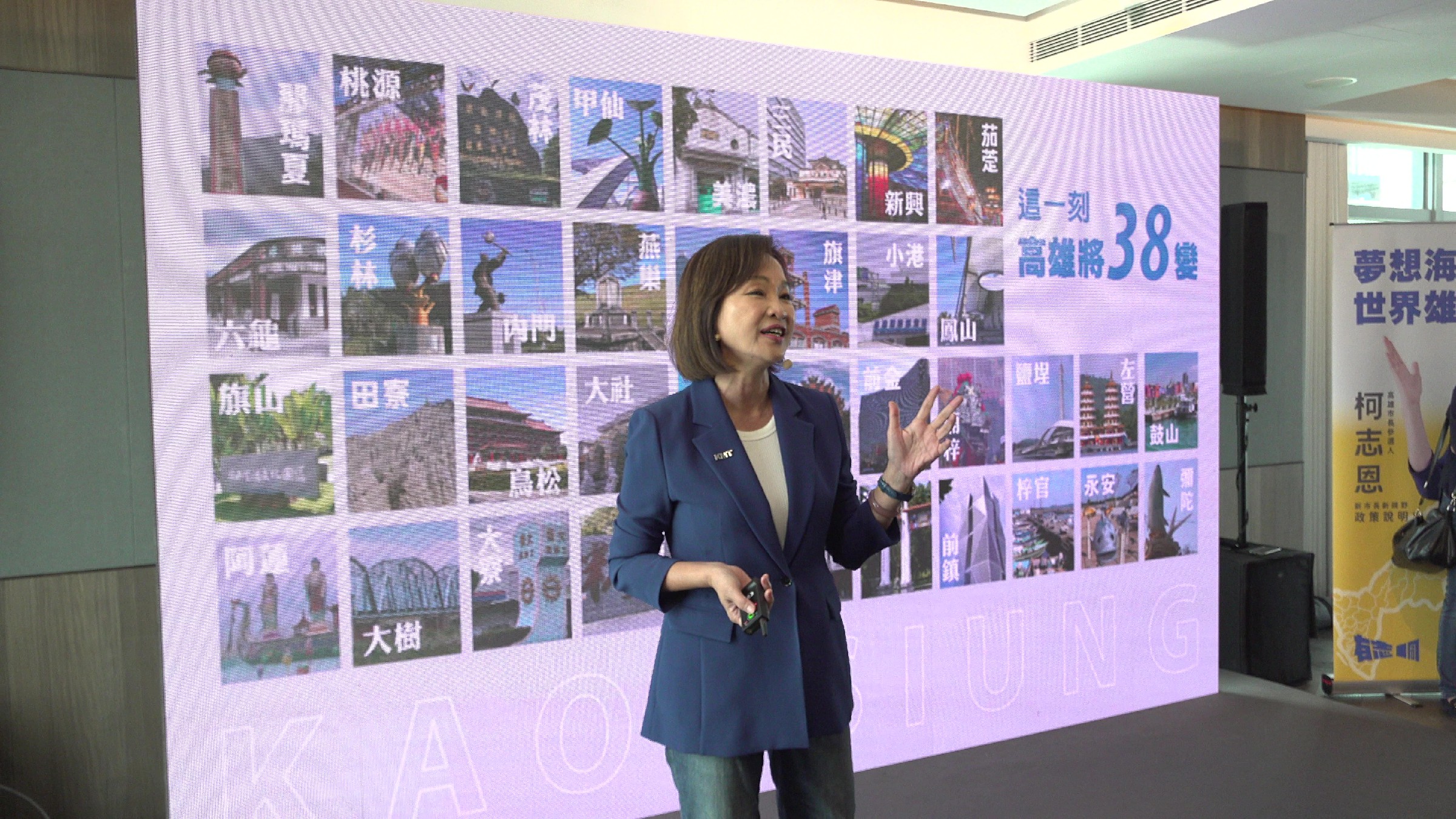 針對區域發展,柯志恩將高雄38個行政區劃分為東、西、南、北、中五大戰略區,提出山城農創、海洋文化、港灣物流、科技產業與都會商圈等發展主軸,強調均衡發展與資源整合,避免城鄉差距擴大,讓各區都能同步成長。
