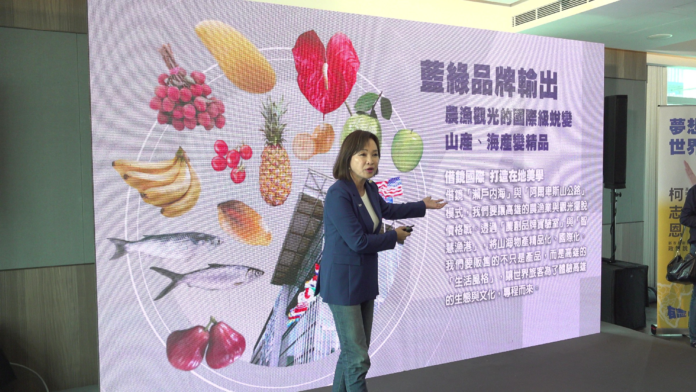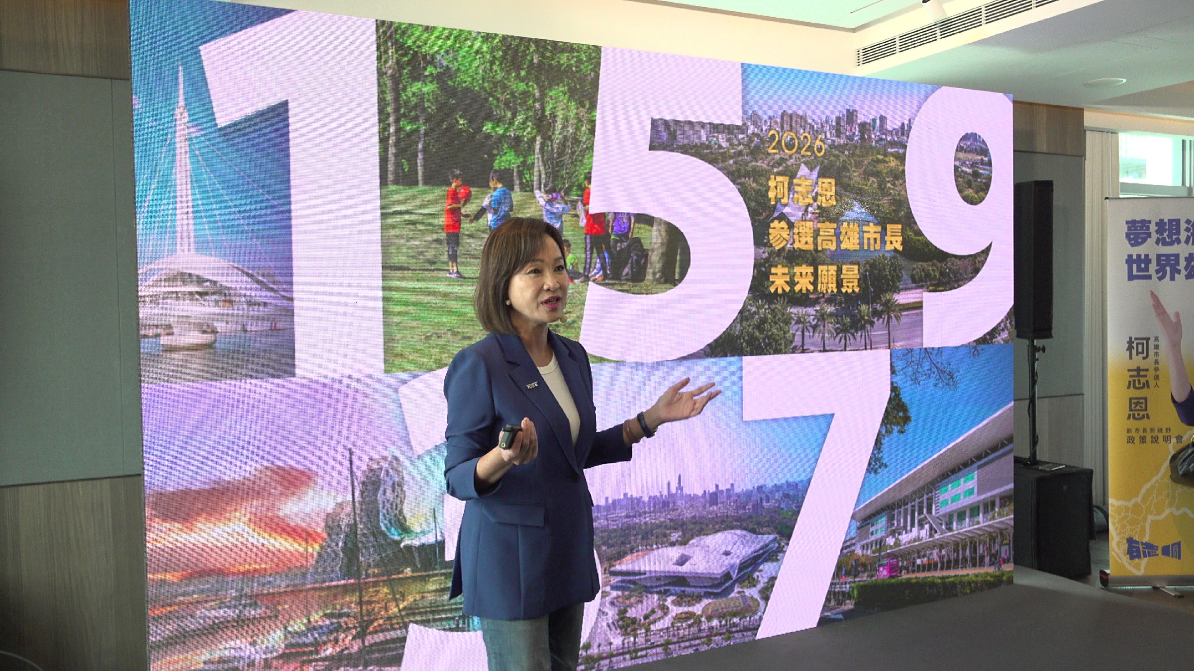 ↑圖說:柯志恩以「1.3.5.7.9,幸福會長久」,從「一個夢想、三個希望、五區均衡、七個願景、九大方針」部分構建競選高雄市長政見藍圖。(圖片來源:記者 賴君欣 拍攝)