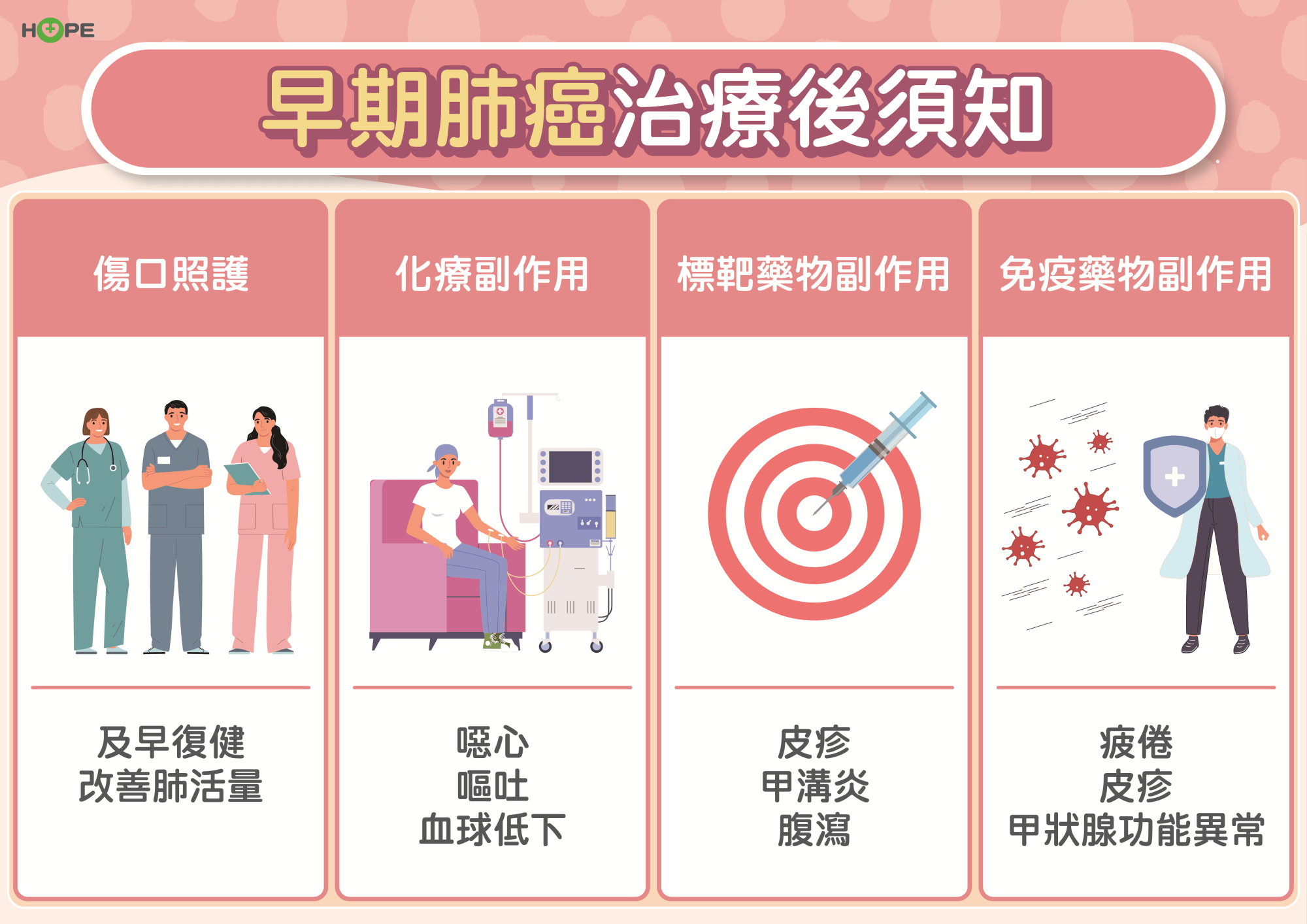 許瀚水說,早期肺癌最好的治療方法是手術,為了避免復發,過去術後會再做化療,但是很無奈的,降低復發率只有5%,療效不佳。不過,現在有維持性標靶藥物、免疫治療可加強輔助治療效果,大幅降低復發率,提高存活率。