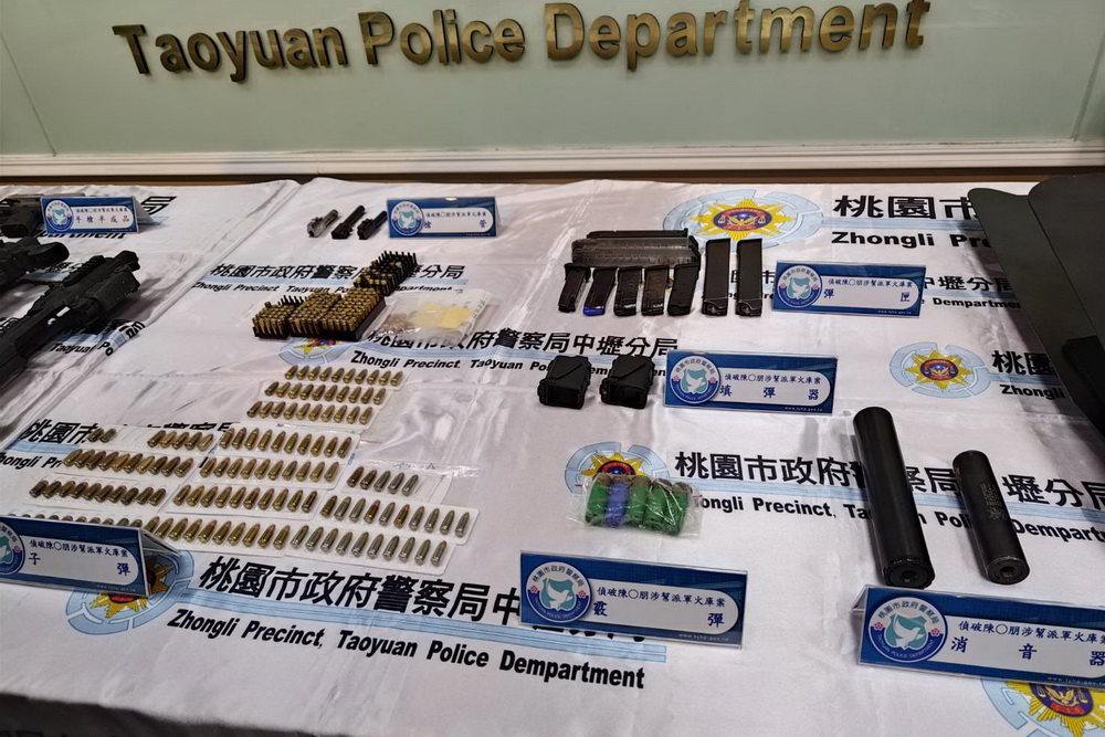 桃園市政府警察局持續強力打擊非法槍械犯罪,日前由中壢分局及楊梅分局報請臺灣桃園地方檢察署指揮偵辦,破獲一起幫派涉嫌藏匿軍火案件,查獲衝鋒槍、霰彈槍及手槍等共10枝長、短槍械,並起出大量彈藥與防彈裝備,成功瓦解幫派軍火庫,有效阻斷非法槍彈流入社會,成效恢弘。