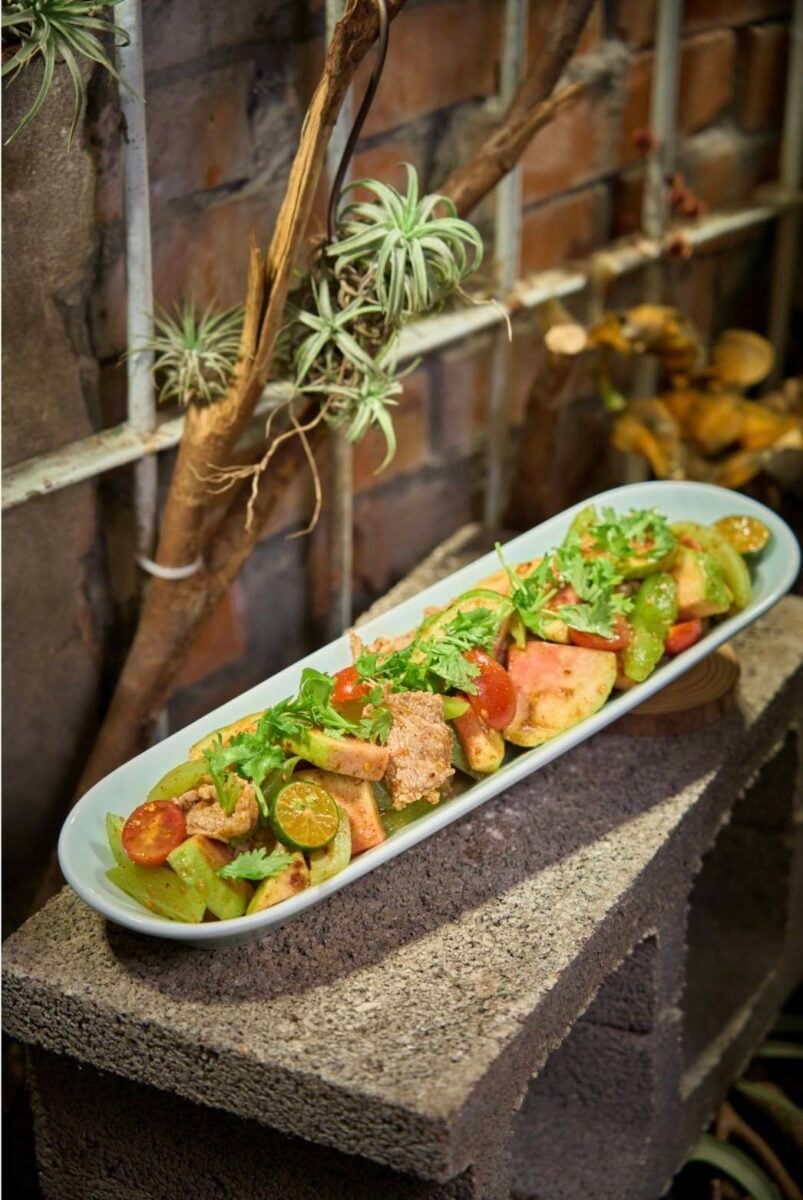 ▲本次活動邀請「港馨合苑-許彥樺主廚」帶來山海果香虱目魚柳,選用高雄在地新鮮食材入菜,將路竹番茄、燕巢芭樂與芒果青的自然果香融入料理之中,搭配彌陀虱目魚柳細緻鮮甜的肉質,交織出清新爽口的風味層次,番茄的微酸、芭樂的清甜與芒果青的果香相互襯托,讓魚肉更加鮮美,入口果香清爽、魚肉細嫩,讓民眾了解食材不用面向的結合運用。