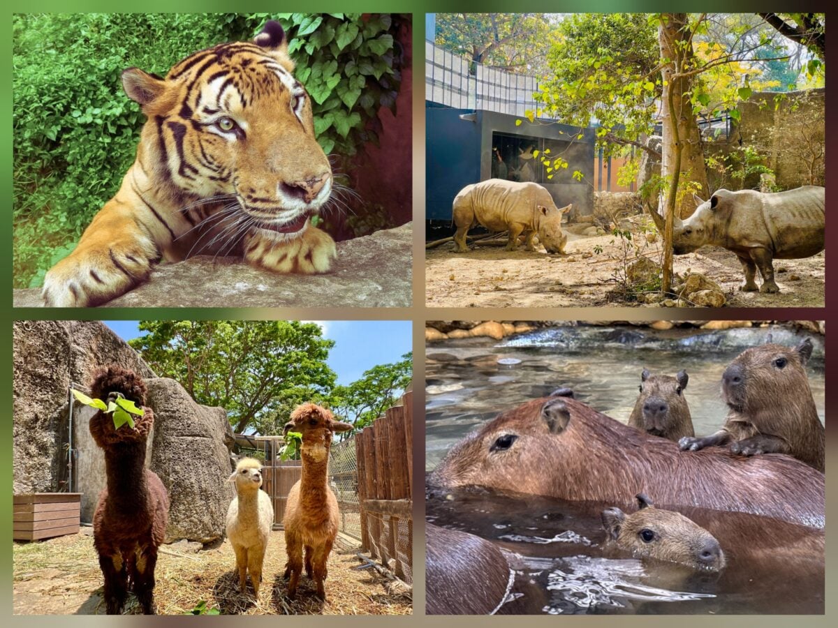 ▲孟加拉虎「阿生」、白犀牛「犀奇」與「寶寶」、羊駝家族、水豚家族。